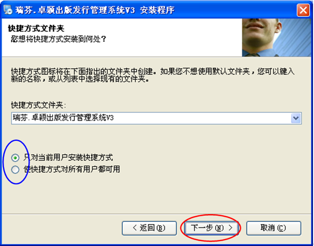 瑞芬.卓颖出版发行管理系统V3.exe默认安装,如下图: